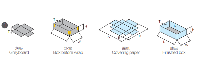 1. 盒子大小規(guī)格受面紙尺寸的約束;